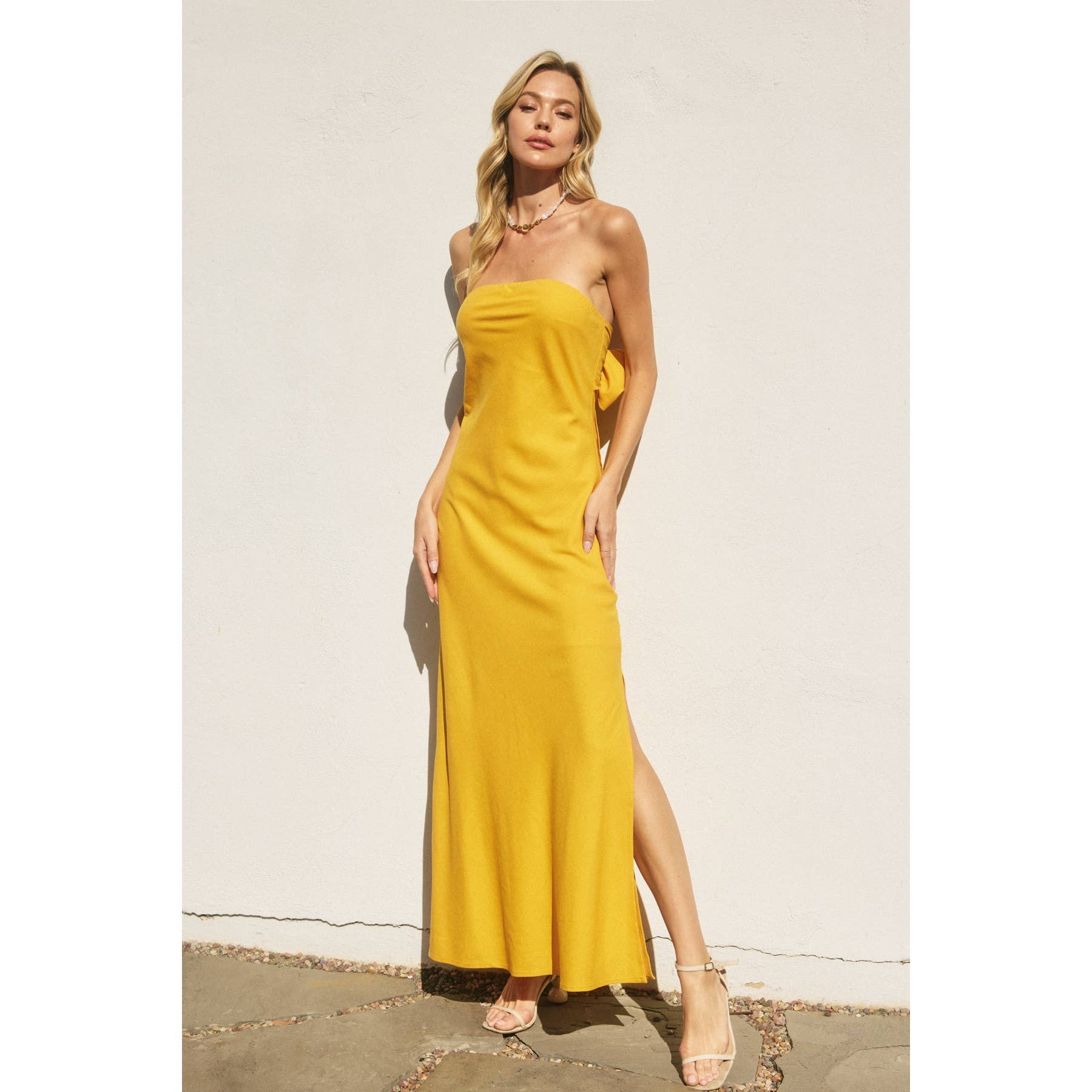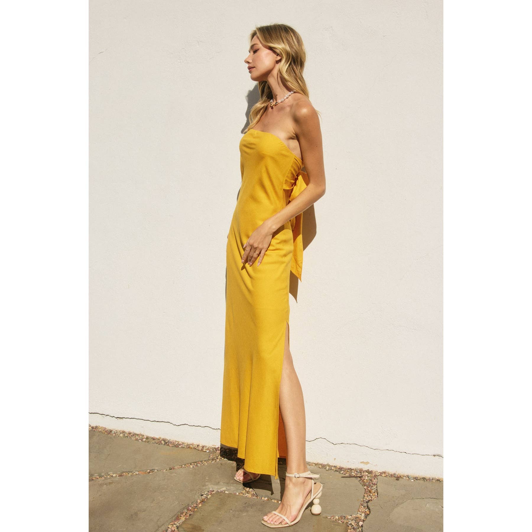 Heaven Sent Strapless Bias Cut Maxi Dress: MARIGOLD