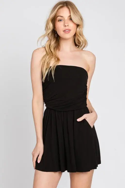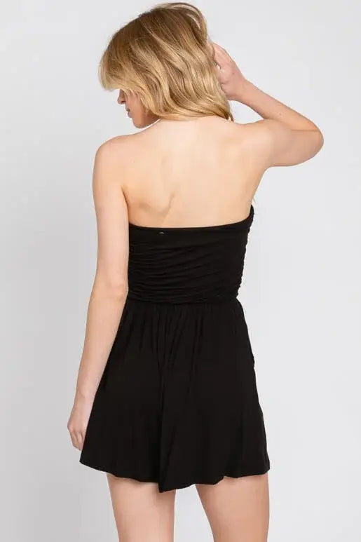 Tank top shirring detailed flowy romper. model is 5'6" and wearing a small.